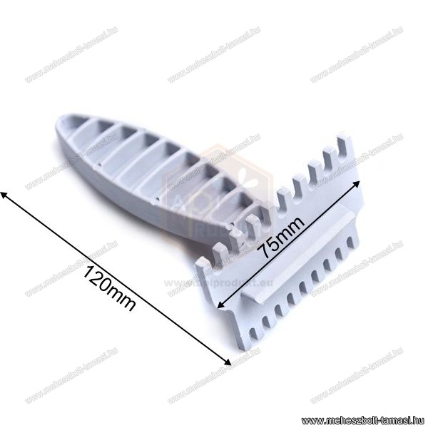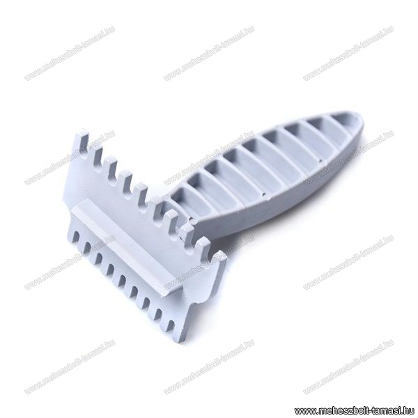 Merevített műanyag kaparó fém és műanyag rácsra kiváló segítség a fém és műanyag rácsok tisztításánál. A kaparó két oldalú, az egyik oldalán sűrűbb és a szélesebb részén ritkább fogakkal.