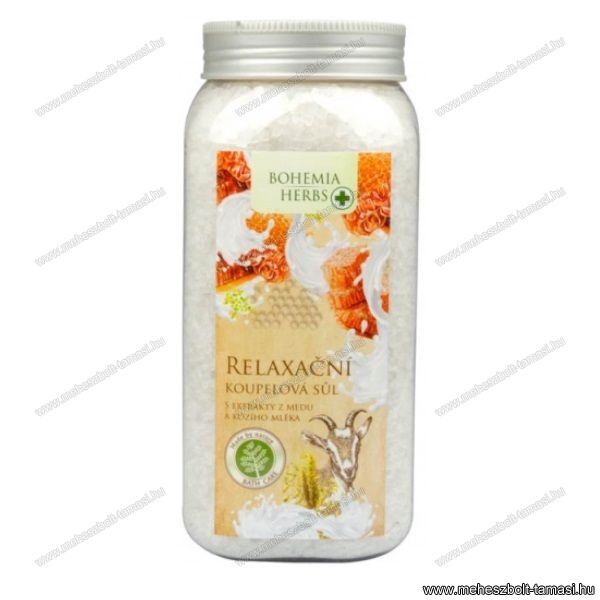 BohemiaHerbs relaxáló fürdősó 900g a mézelő méh mézének és kecsketej egyedi kivonatának köszönhetően stimulálja a szervezetet, oldja a belső feszültséget és serkenti a bőrre való tisztító és ápoló hatásait.