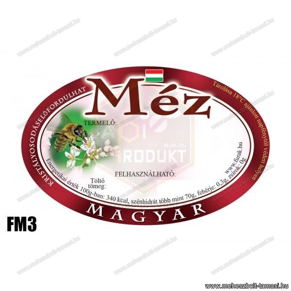Ovális címke Magyar Méz Bordó FM03
